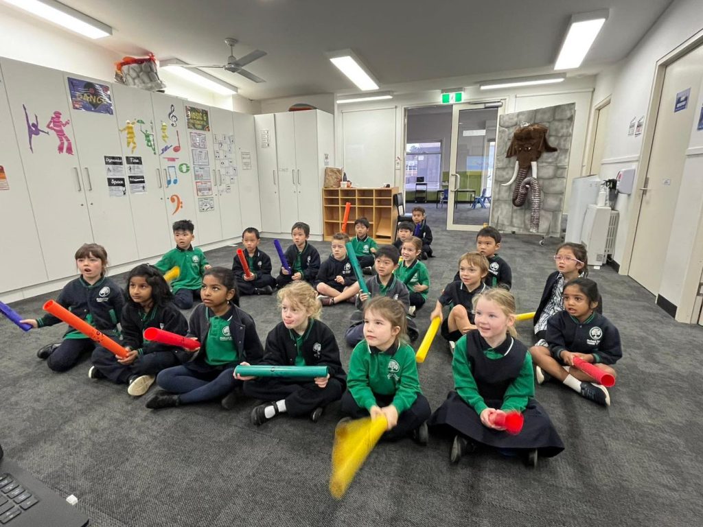 Performing Arts is taught in one of our custom built performing arts spaces, which includes tiered seating and a stage. This allows for great possibility and opportunity. Our vibrant program caters for all levels of musical knowledge and skill and incorporates music, singing, dance and dramatic performance. Every student enjoys a variety of performing arts’ experiences, such as singing in massed year level choirs, devising and performing short plays, learning hip hop dancing and, in Year Four, an instrument.